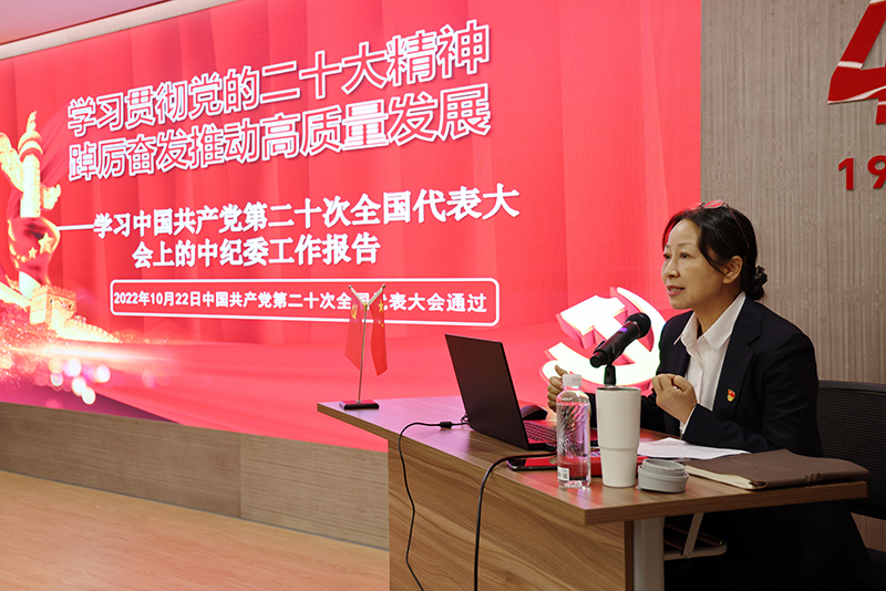 冶金物資黨委委員、紀委書記陳洪琳作黨紀黨規的主題分享。