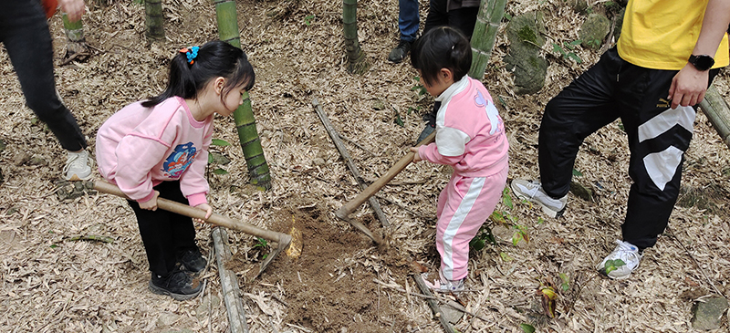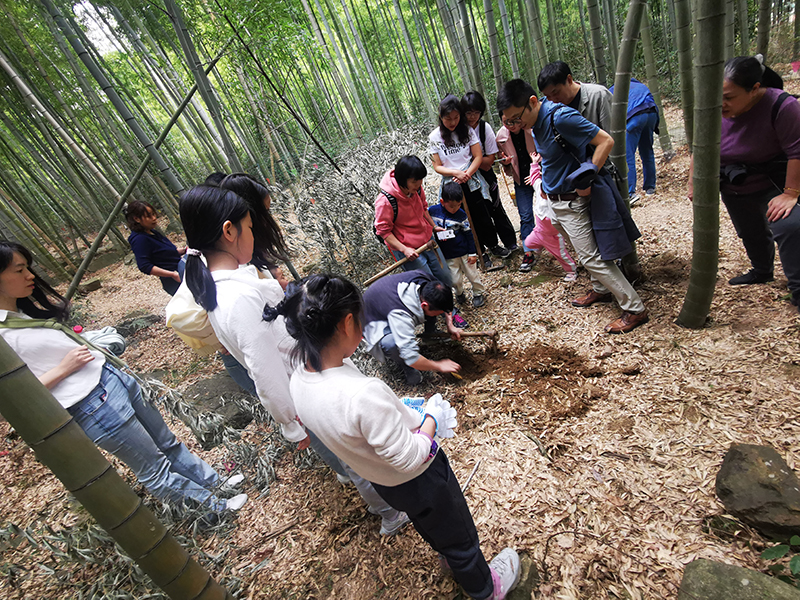 春日里的第一站,是臨安白水澗景區(qū)。大家呼吸著春日的氣息,融入綠意里,賞澗之幽、水之清、竹之翠、石之奇,彷佛置身桃源……遠(yuǎn)山蜿蜒,細(xì)霧如紗,竹影婆娑,綠意盎然。竹筍才生黃犢角,蕨芽初長小兒拳,正是春筍好時(shí)節(jié)。大家游竹海、挖春筍,個(gè)個(gè)挽起袖子,勁頭十足,挖得熱火朝天。幾鋤頭下去,酣暢淋漓,一顆顆小筍子,透鮮透鮮的,被小心地翻開上層的泥土,冒出頭來,撞上春日的第一縷陽光。大家興奮地捧著自己挖的筍,享受著團(tuán)結(jié)協(xié)作、共同勞動(dòng)的喜悅。