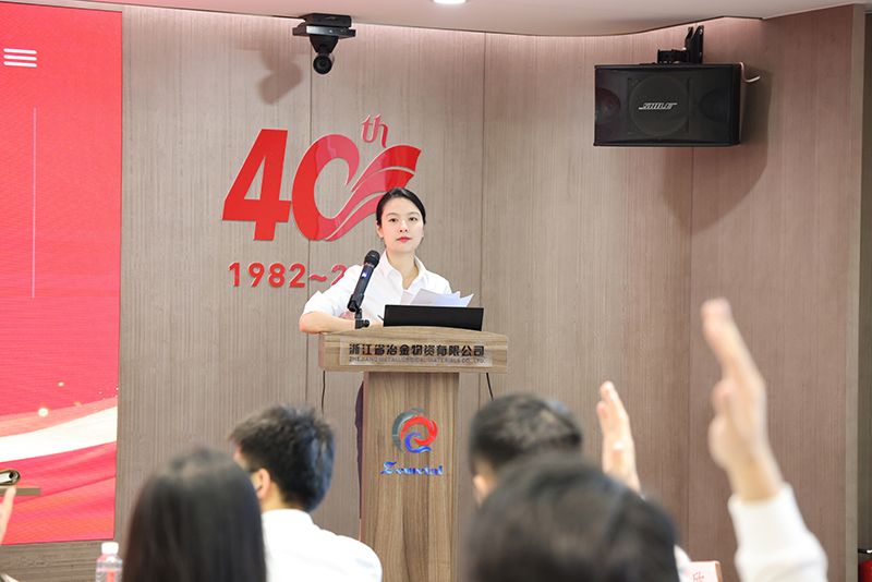 馮翔作共青團浙江省冶金物資有限公司第四屆直屬支部委員會工作報告。報告從思想建設、人才隊伍、團支部活動三個方面總結了冶金物資直屬團支部的工作成效。希望新一屆團支部能夠牢記“黨旗所指就是團旗所向”,在青年中鞏固和拓展好主題教育成效,同時繼續在創新活動載體上下功夫,不斷與時俱進,開拓新視野,動員全體團員青年敢擔當、能吃苦、肯奮斗,為實現新時代新征程的目標任務匯聚智慧和力量。