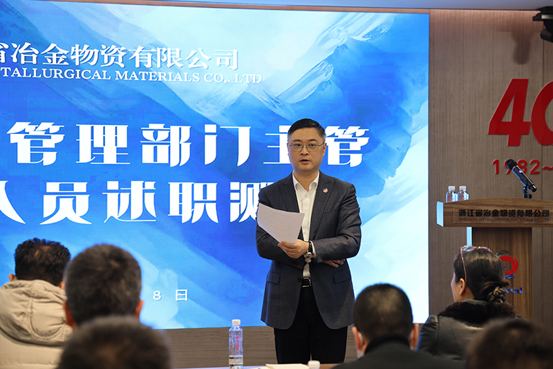 12月8日,冶金物資開展2022年度管理部門主管及以上人員述職測評。此次述職測評由公司黨委書記、董事長鄭浩主持,領導班子成員、各業務部門正職、管理部門主管及以上人員參加。