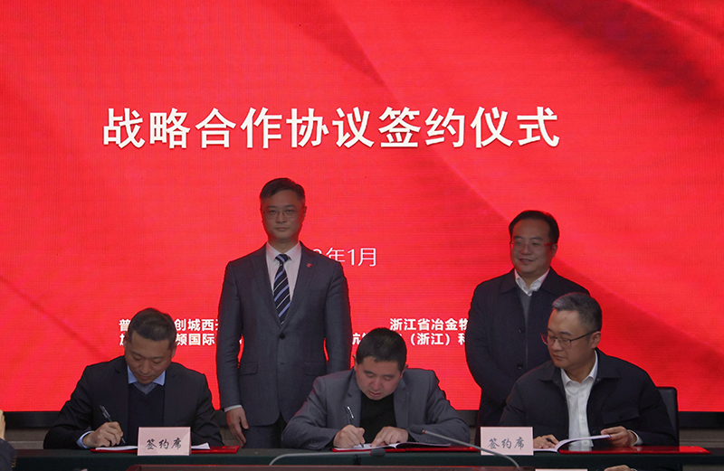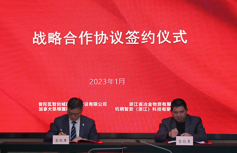 1月11日,冶金物資與舟山普陀城西舉辦戰略合作協議簽約儀式。普陀區人民政府副區長周吉敏、普陀區智創城西開發建設有限公司董事長李波;冶金物資黨委書記、董事長鄭浩,總經理助理、杭鋼智安(浙江)科技有限公司董事長周林軍;加拿大凱頓國際公司中國區總經理馬寧;各方相關單位(部門)人員出席簽約儀式。
