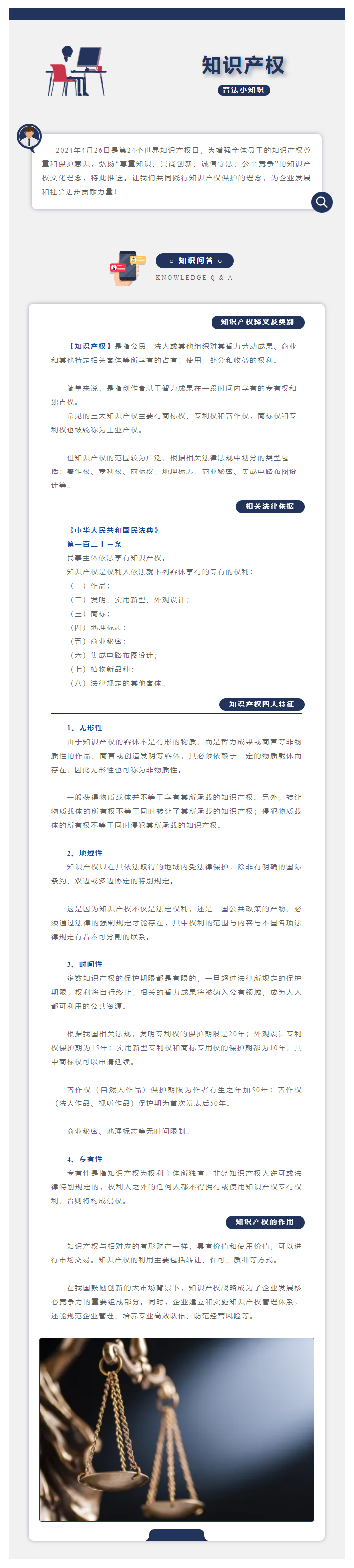 普法小課堂特別篇——知識產權興企,塑造發展新優勢發布日期:2024-04-11