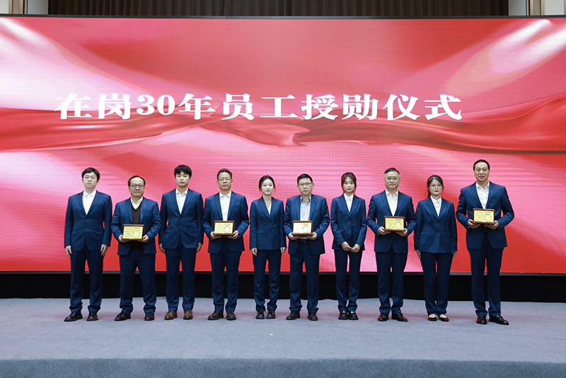 此次大會,還舉行了冶金物資榮耀在崗30年紀(jì)念章授勛儀式。由公司新入職的五名員工代表向前輩獻(xiàn)上象征著榮譽與傳承的勛章。