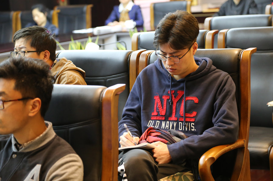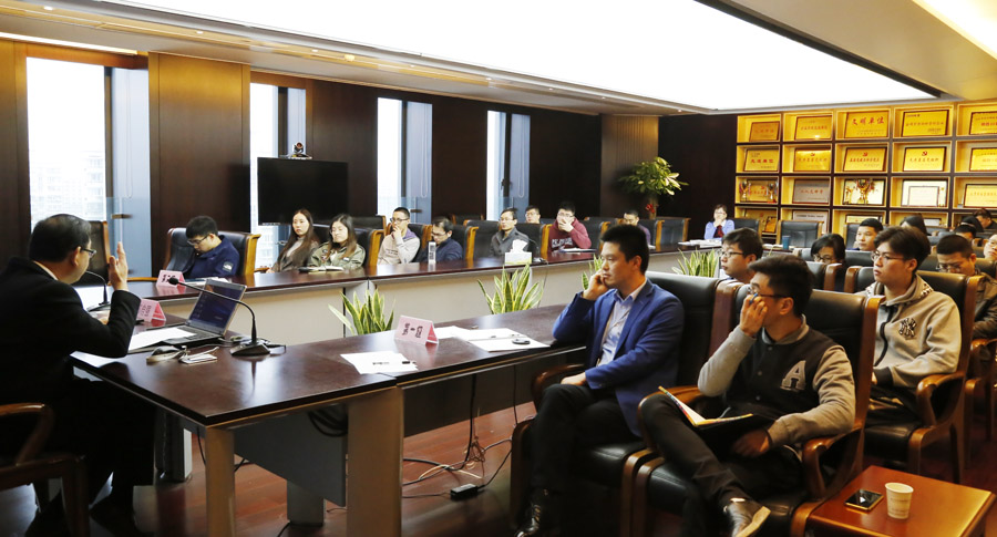 董事長、總經(jīng)理鄭浩及總經(jīng)理助理陳建正在回應各組學員問題
