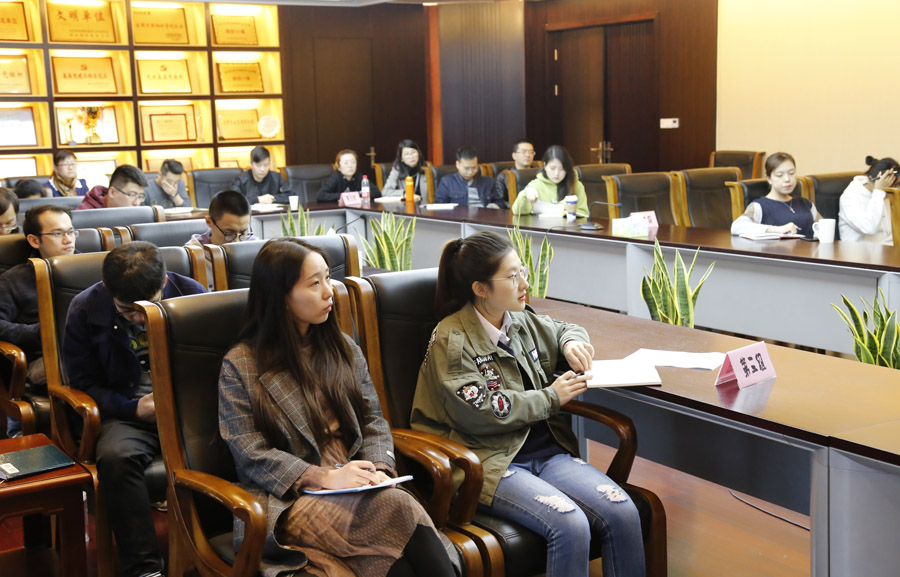 課后,大家分組討論公司發(fā)展中存在的問題,并由組長代表小組上臺發(fā)言。董事長、總經(jīng)理鄭浩,總經(jīng)理助理陳建先后對各組提出的8個問題一一進行回應。